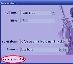 Dinamik İcra programının versiyonunu ilk giriş ekranının sol alt köşesinde görebilirsiniz